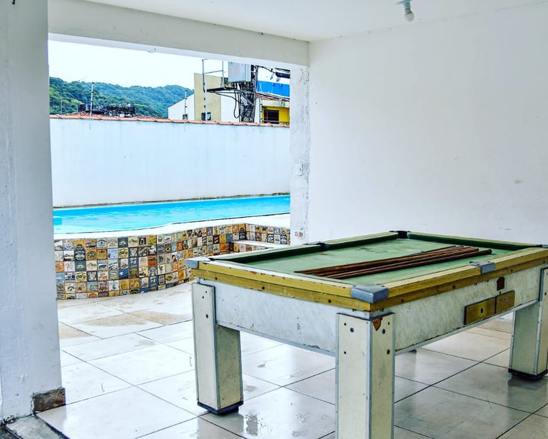 Esta área da sinuca tem um banheiro com chuveiro churrasqueira e tem um chuveirinho para tirar área da praia para entrar na piscina