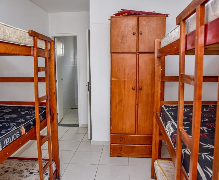 2 Beliche ou Seja 4 Camas e 1 Ventilador de Teto Banheiro ao Lado no Corredor.